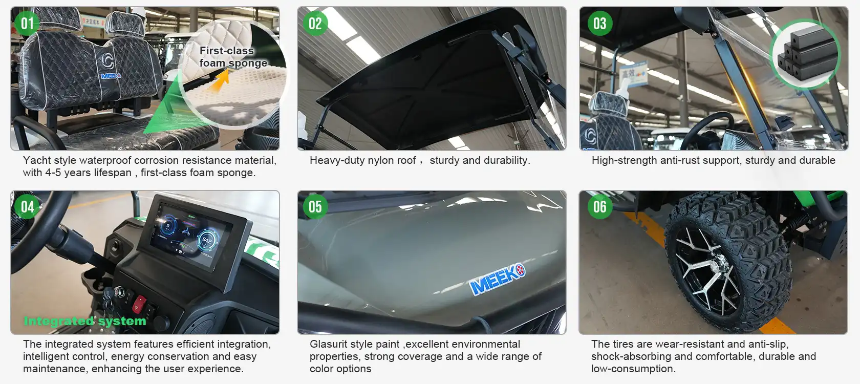 Welcome to Shandong Meeko New Energy Tech Inc, your premier supplier of high-quality 2 seat mini golf carts. With our mature R&D team, customization capabilities, and diverse cart mold options, we offer competitive pricing and international sales expertise. Our products are perfect for golf courses, resorts, theme parks, and industrial facilities, combining style, comfort, and functionality.